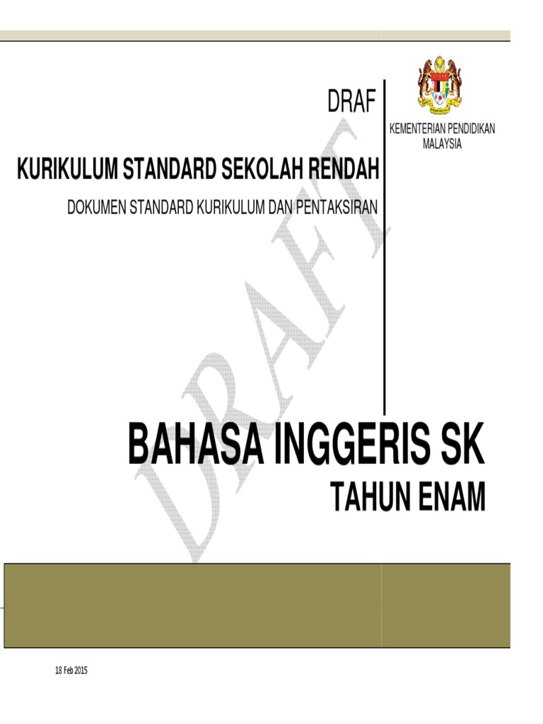 Dskp bahasa inggeris sk kssr tahun 1. The table below shows the overall generic levels of the acquisition of English Language skills for Year 6 SK.